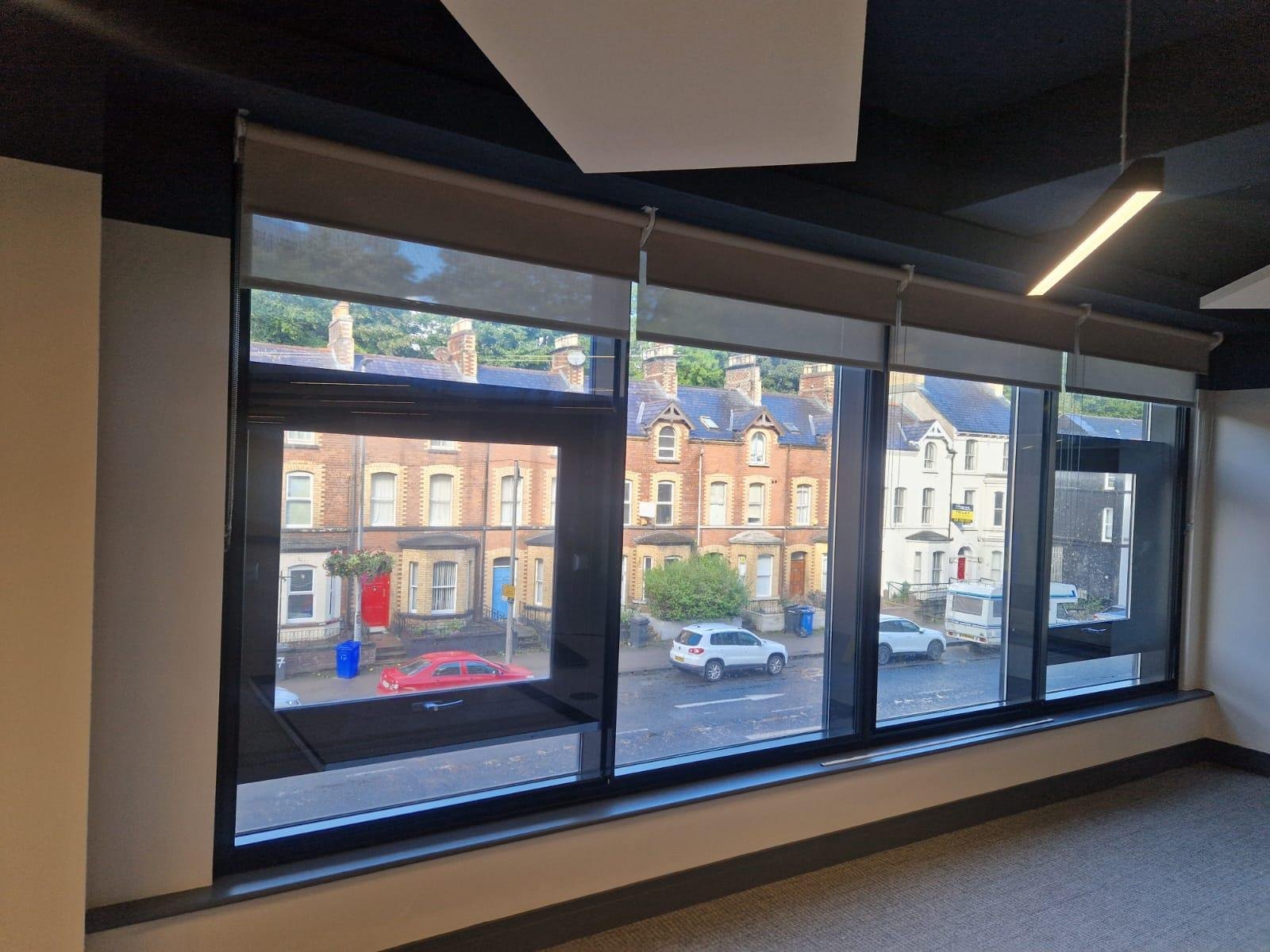 These acoustic horizontal sliders were installed over a busy road in Belfast. They are installed to reduce road and general